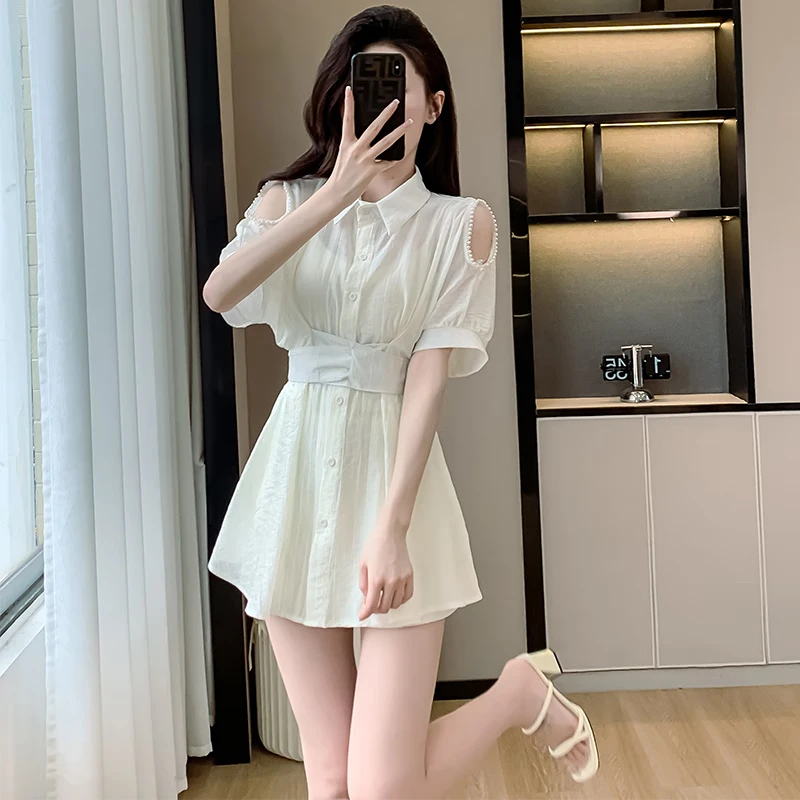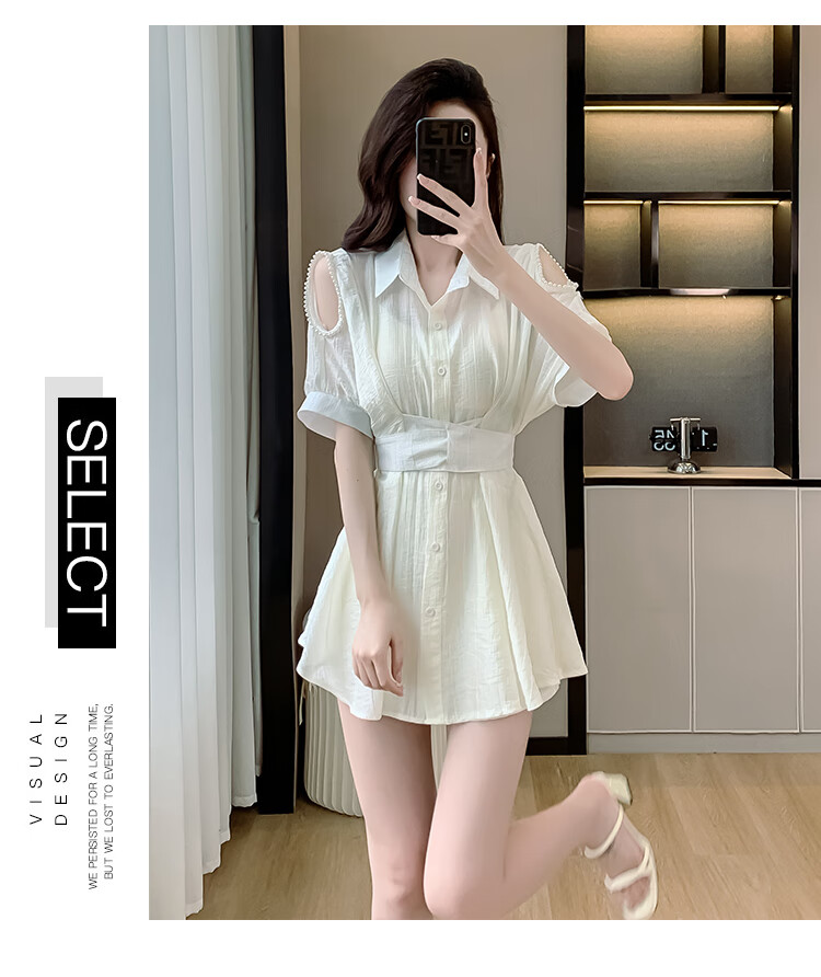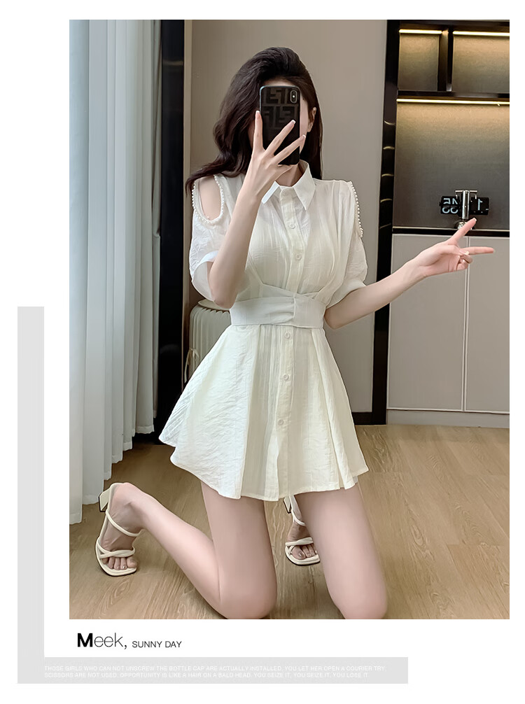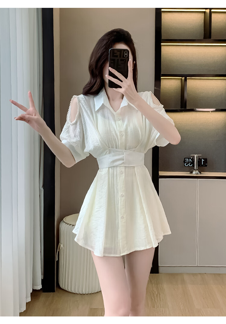 连衣裙女套装2024夏季新款法式气质镂空设计显瘦白色蕾丝裙子 白色