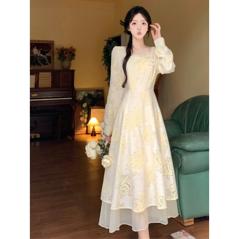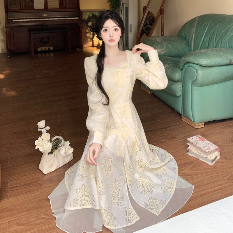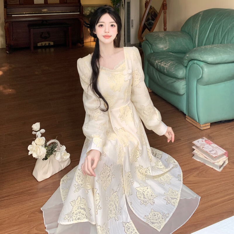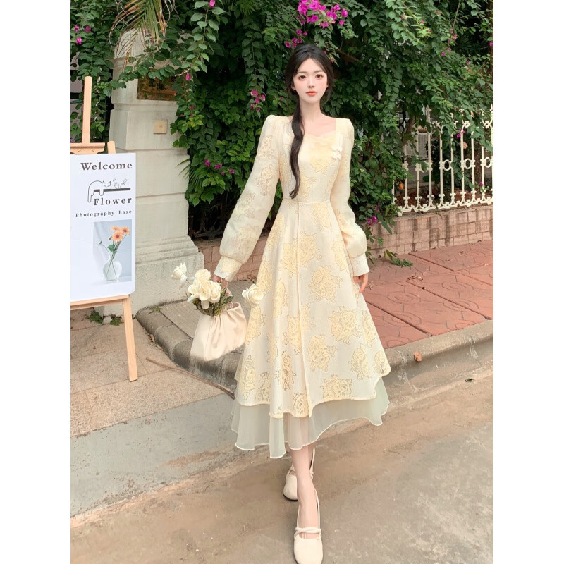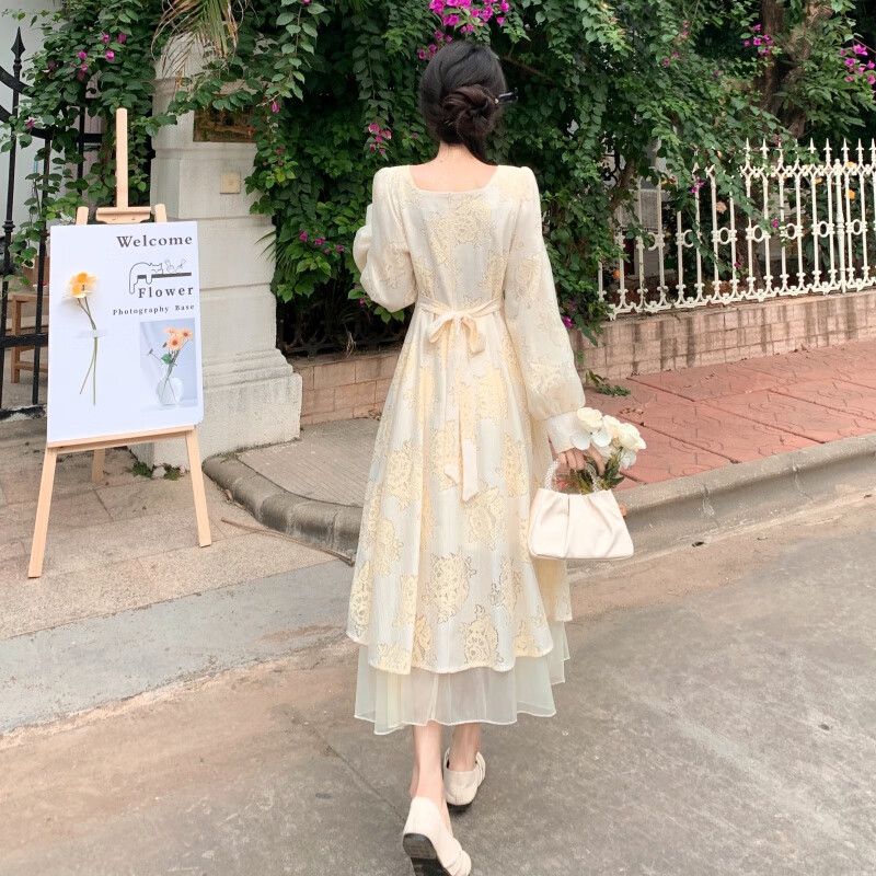 法式连衣裙女2024秋季新款桔梗甜美气质碎花设计感小众裙子 套装(+裙子)