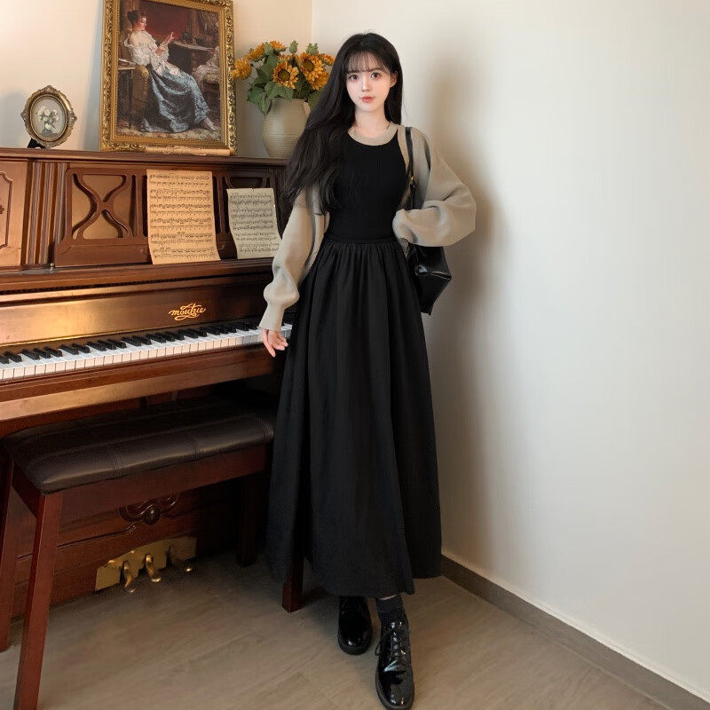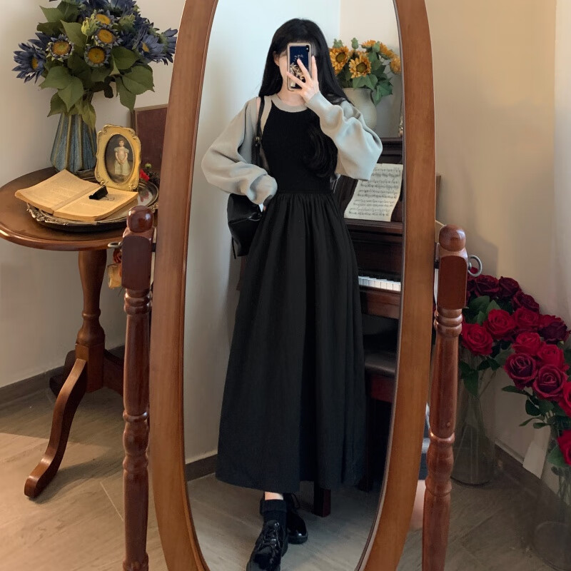 法式连衣裙女2024秋季新款纯欲赫本风复古独特设计小众裙子