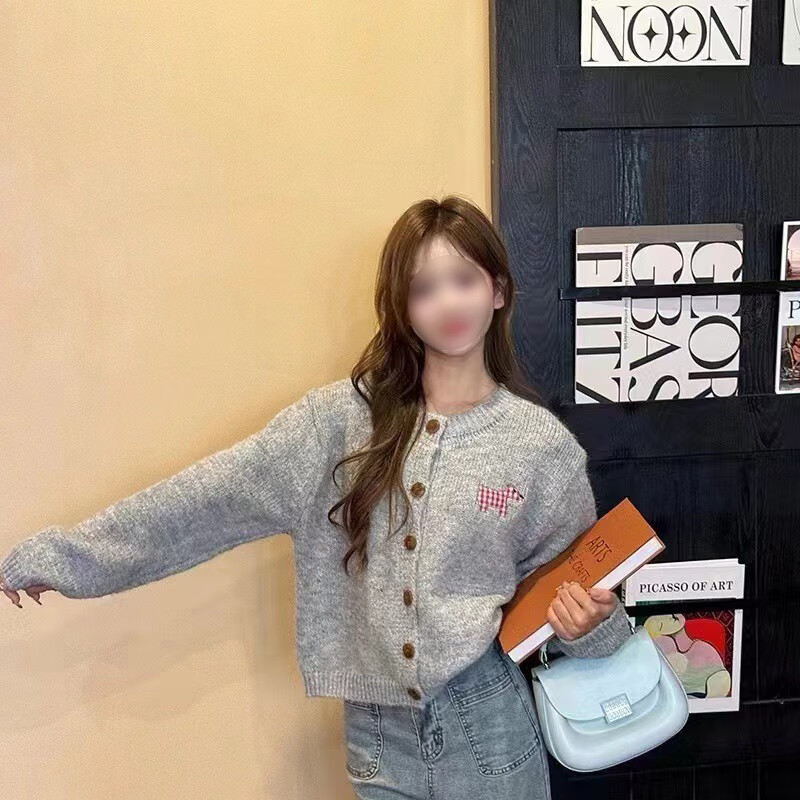 针织衫女秋冬新款法式小香风纯色V领纽扣针织开衫毛衣 灰色