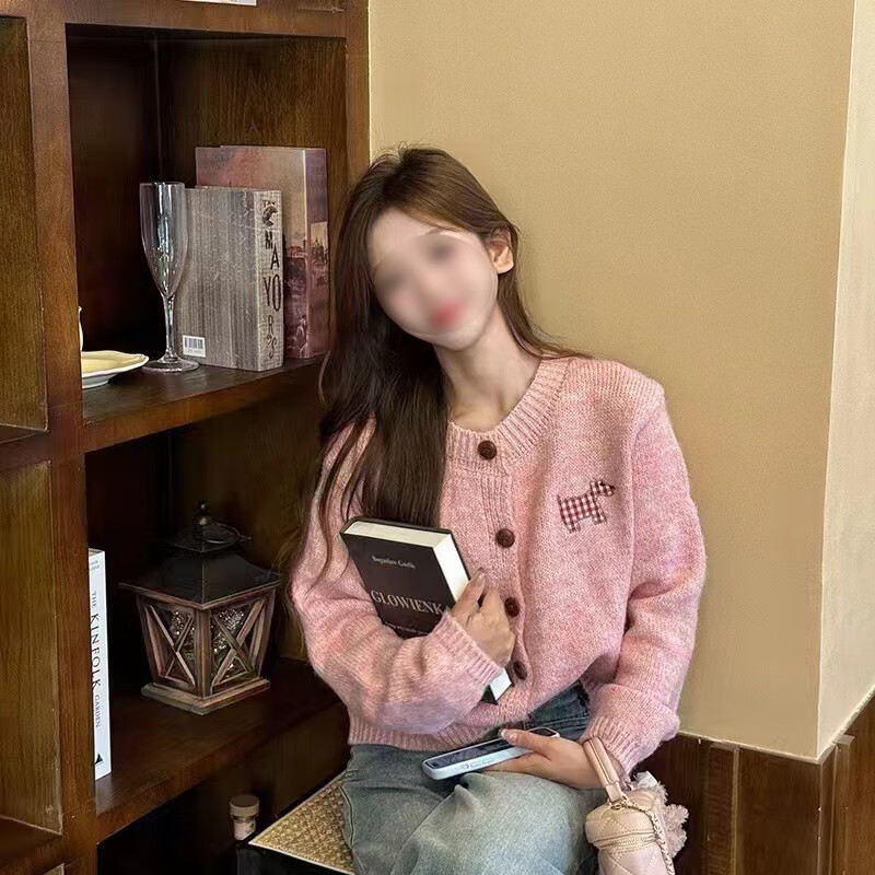 小香风针织衫女2024秋冬新款软糯内搭上衣宽松花边针织开衫毛衣 均码