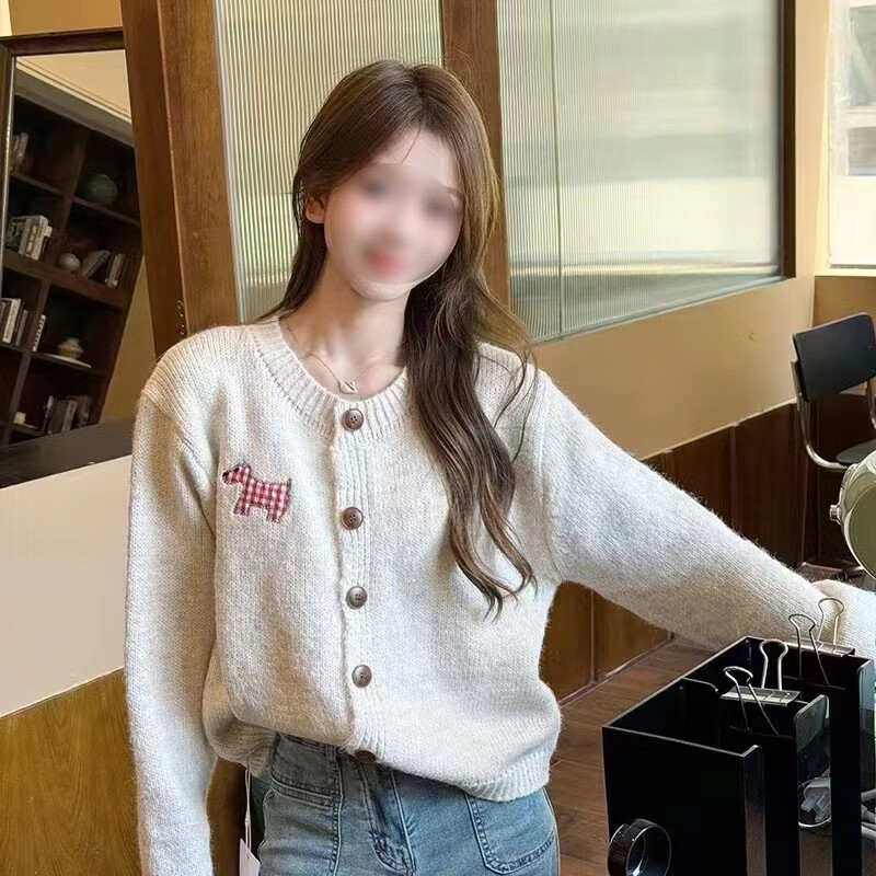 针织衫女秋冬新款复古洋气连帽卡通针织开衫毛衣