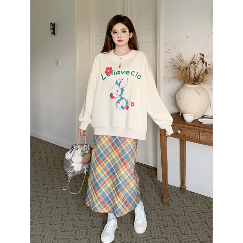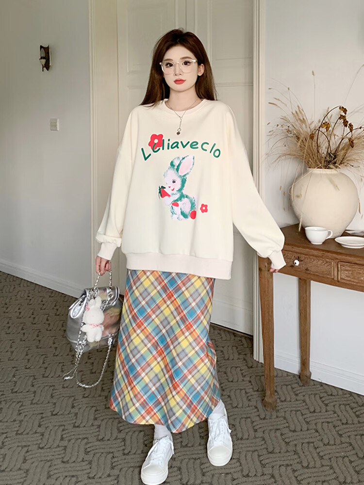 卫衣女套装2024秋冬新款法式设计感蝴蝶结高腰显瘦甜美裙子 套装(+裙子)