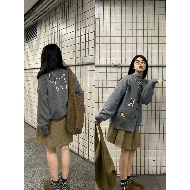 连衣裙女2024秋冬新款学院风百搭宽松刺绣麻花针织开衫