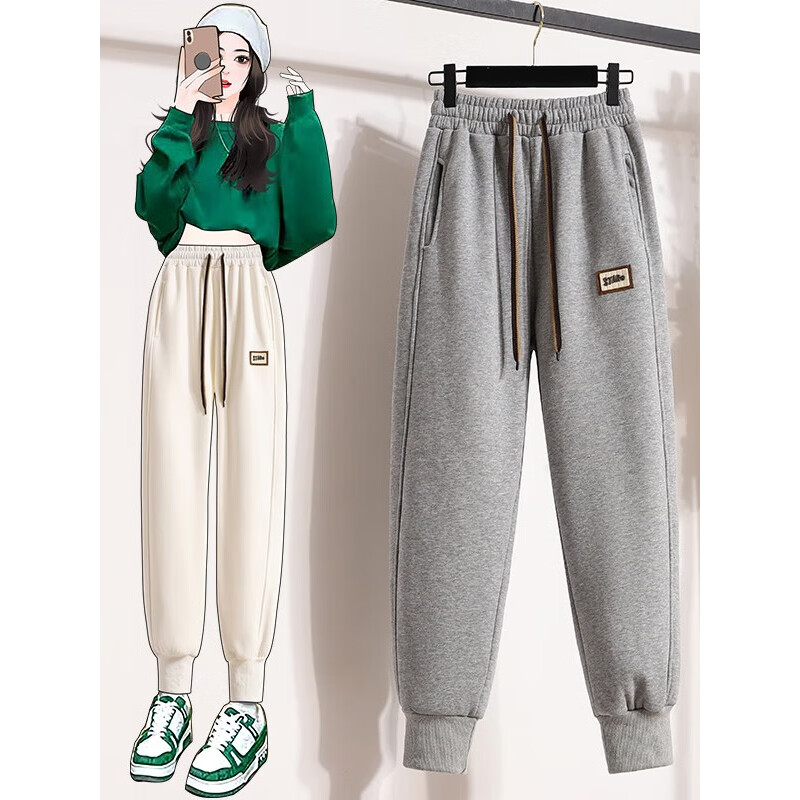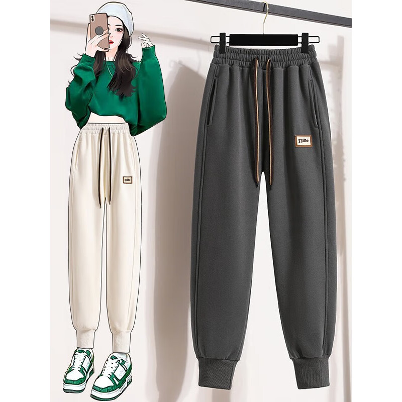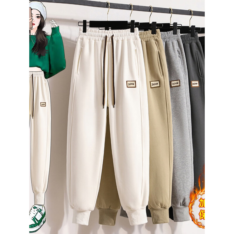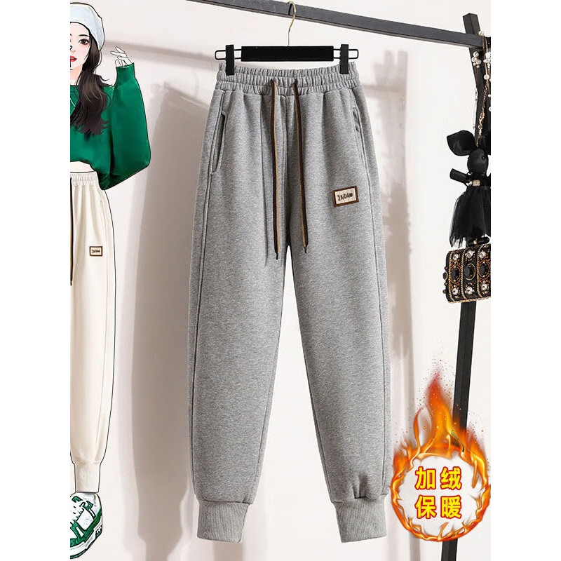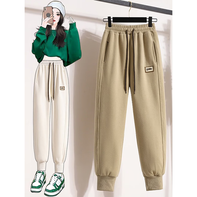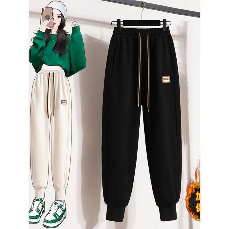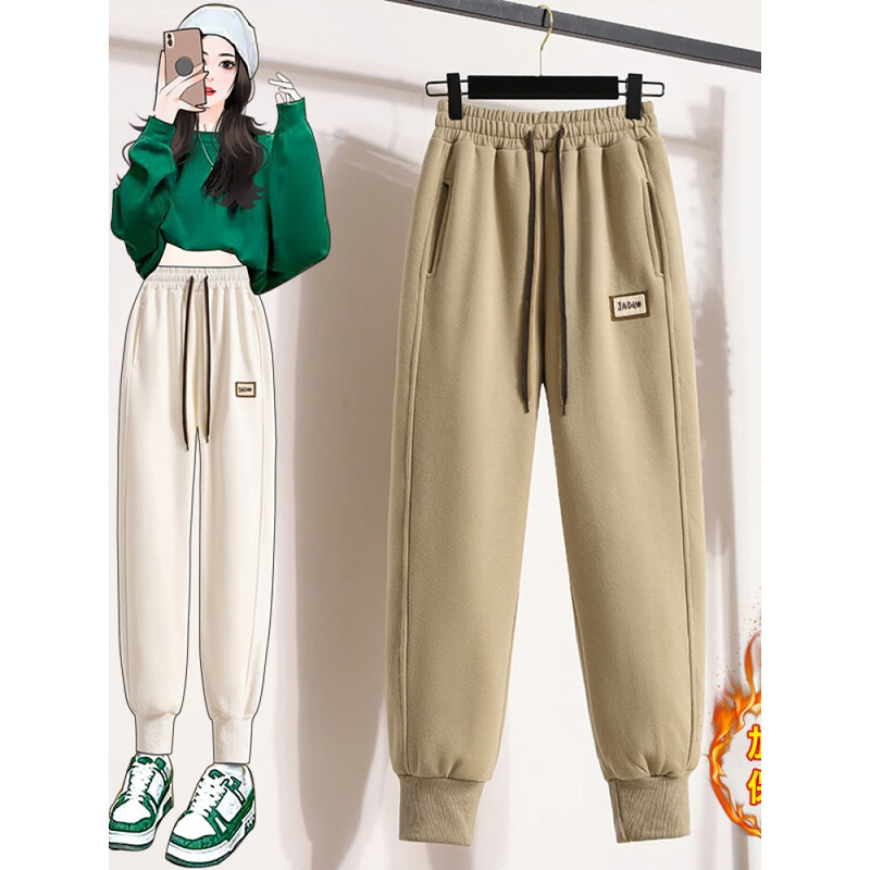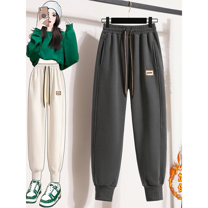 加绒加厚羊羔绒休闲裤女秋冬新品松紧腰棉裤学生束脚保暖运动裤